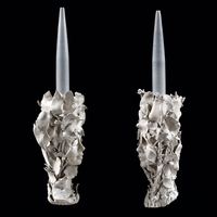 Quattro appliques in ceramica policroma raffiguranti le quattro stagioni. Ritratti di Leonor Fini e Fabrizio Clerici. Diffusori in vetro soffiato sabbiato, Venini.