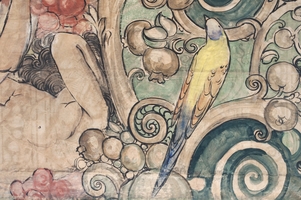 Studio preparatorio a tecnica mista su carta per una decorazione murale delle Terme Berzieri a Salsomaggiore.